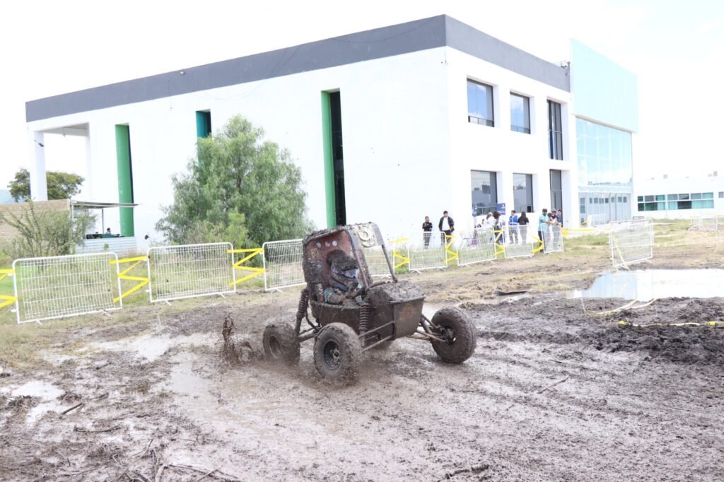 Antes, la secretaria de Educación del Estado de Querétaro (SEDEQ), Martha Soto, junto con el rector de la UPSRJ, Christian Reyes Méndez, y autoridades e invitados especiales, dio el banderazo de salida a la carrera, en la que estudiantes de Ingeniería en Sistemas Automotrices y disciplinas afines construyen un prototipo vehicular todo terreno.