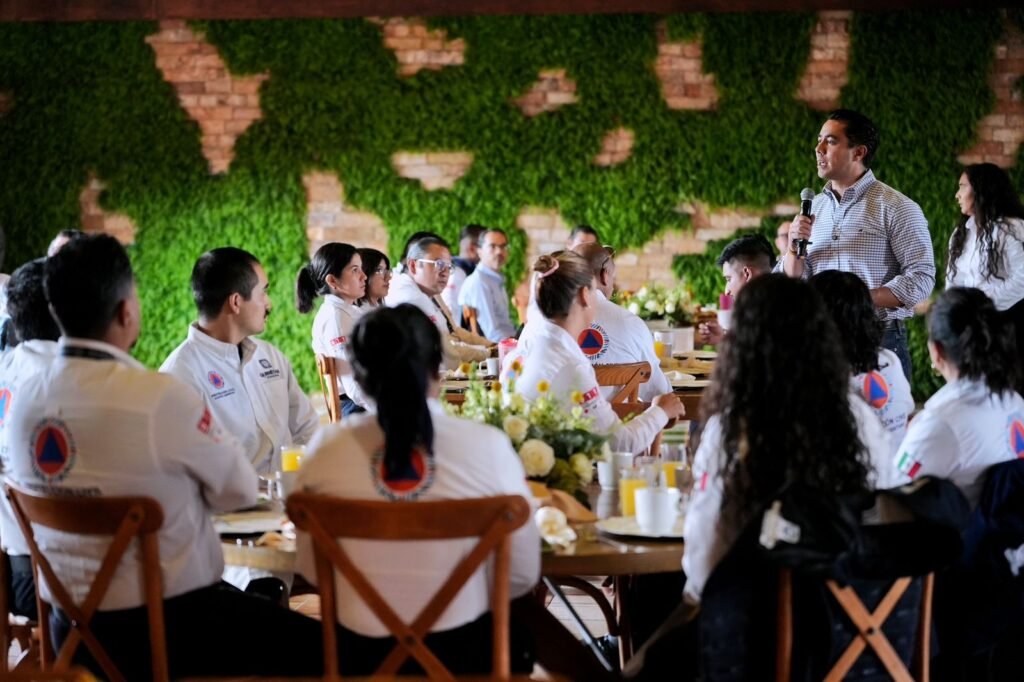 En el marco del Día Nacional de la Protección Civil, el alcalde Felipe Fernando Macías Olvera se reunió con personal operativo y administrativo de la Coordinación Municipal de Protección Civil de Querétaro, ante quienes reconoció y agradeció su labor, compromiso y esfuerzo diario para salvaguardar las vidas de las familias queretanas; asimismo, se comprometió a continuar el trabajo para fortalecer la corporación.