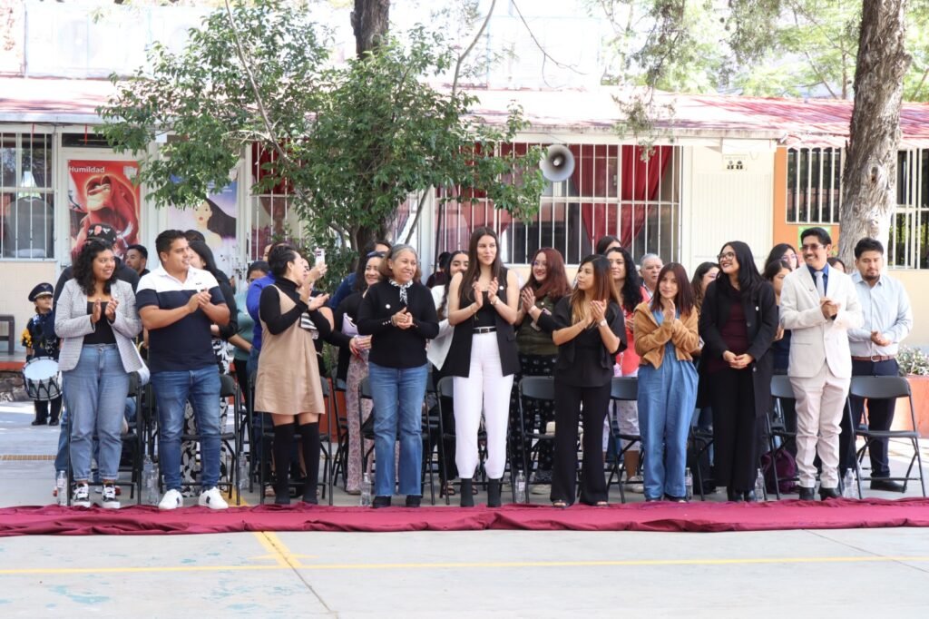 Mientras tanto la profesora María del Carmen Rodríguez Duarte, directora de la escuela, subrayó la presencia de las y los alumnos en la ceremonia, “pues ustedes son la razón de ser de nuestra institución”. También destacó la labor del personal docente, que ha consolidado el prestigio del plantel escolar en Santa Rosa Jáuregui.