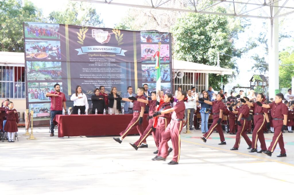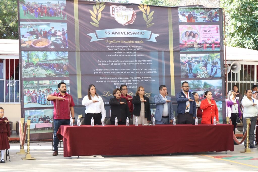Este miércoles 1 de octubre se realizó la ceremonia conmemorativa por el 55 aniversario de la Escuela Primaria “Lic. Benito Juárez” de Santa Rosa Jáuregui; el acto contó con la presencia de autoridades educativas y delegacionales, además de que reunió a la comunidad escolar, padres de familia y alumnos egresados de diferentes generaciones.