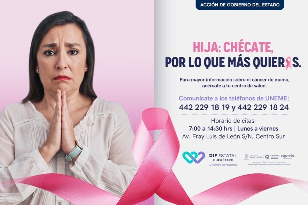 La Secretaría de Salud del Estado de Querétaro, en el marco del Mes de Sensibilización sobre el Cáncer de Mama, refuerza su compromiso con la salud de la población y se suma a las acciones enfocadas en la prevención y detección oportuna de esta enfermedad.