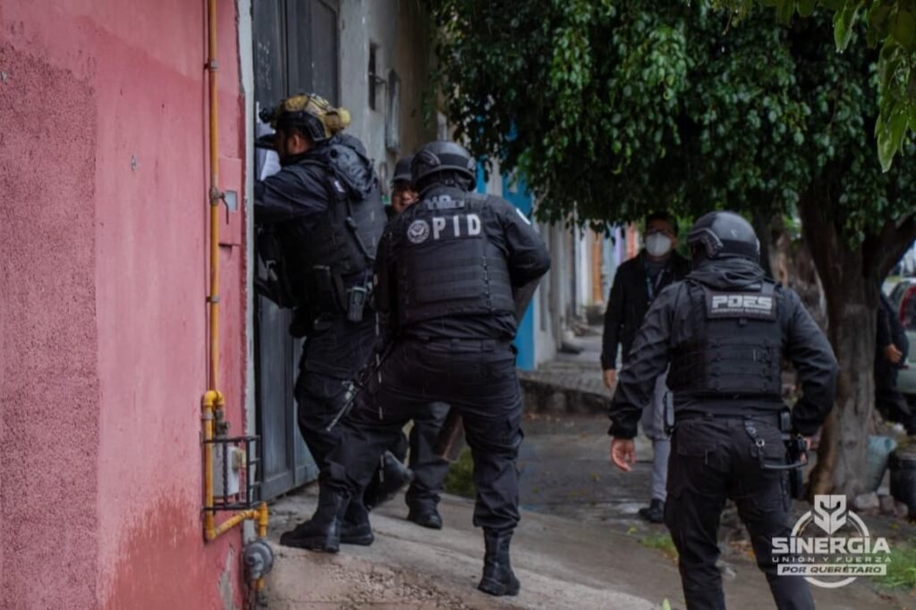 La mañana de este jueves, a través de la estrategia Sinergia por Querétaro, se realizó un despliegue operativo con personal ministerial, Policía de Investigación del Delito, Secretaría de la Defensa Nacional, Guardia Nacional y Policía Estatal, logrando la intervención simultanea de 18 domicilios de los municipios de Querétaro, El Marqués y Corregidora, asegurando a ocho personas, droga, dinero en efectivo y otros indicios.