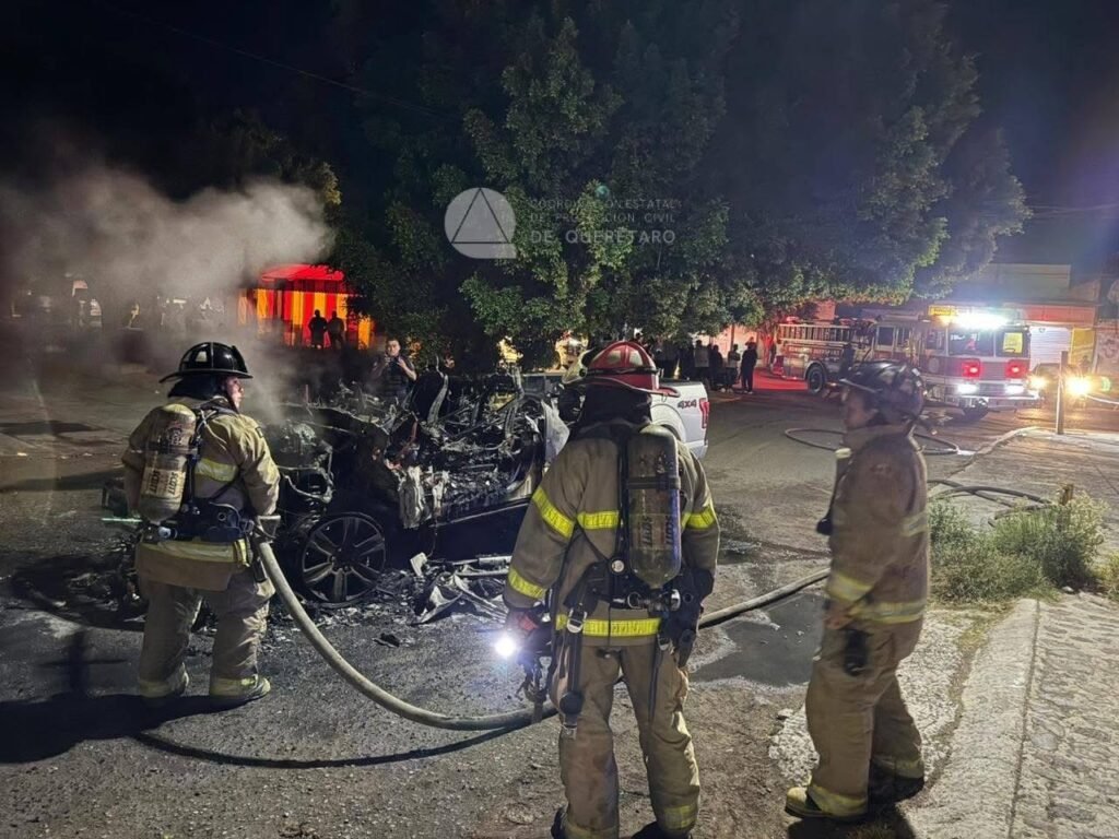 “Personal de Bomberos Querétaro controló un incendio que consumió por completo una camioneta Pickup. Entre los escombros, se localizaron también los restos de una motocicleta calcinada”, informó sobre el hecho la Coordinación Estatal de Protección Civil de Querétaro.