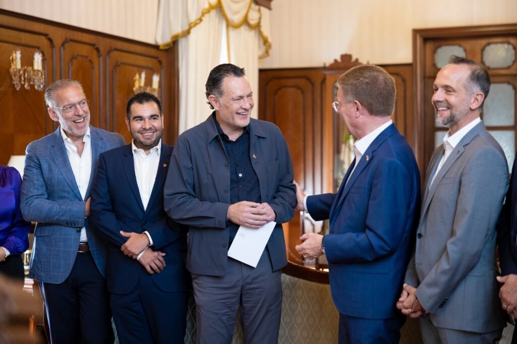 Kuri González recibió a una comitiva de la firma del ramo aeroespacial, líder mundial en la industria de la aviación de negocios, encabezada por el vicepresidente de Transformación de Bombardier, Tony Curry, quien presentó el plan que tiene la empresa para fortalecer su presencia en el estado.