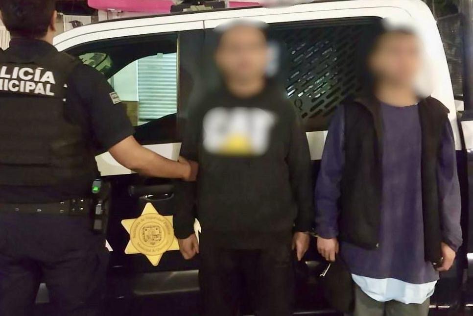 A su arribo, los policías municipales se entrevistaron con personal de la empresa, quienes señalaron que dos masculinos acababan de salir corriendo con material metálico, por lo que se activó un dispositivo de búsqueda, localizando a los probables responsables intentando huir por una zona cerril.