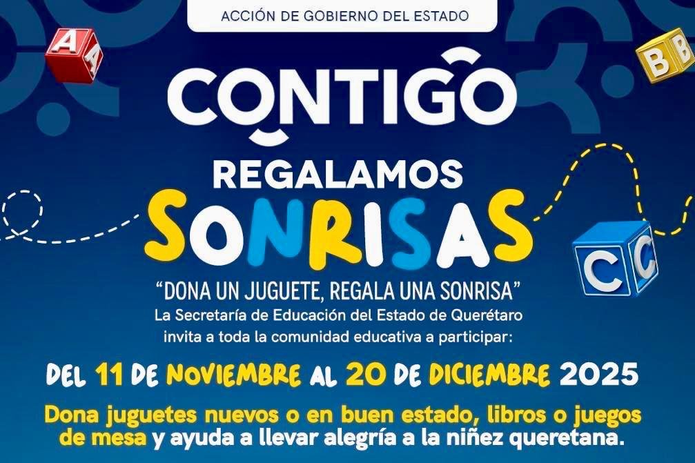 Con la finalidad de fomentar entre la comunidad educativa valores como la empatía, solidaridad y generosidad, la Secretaría de Educación del Estado de Querétaro (SEDEQ) lanzó la colecta “Contigo Regalamos Sonrisas” para recaudar juguetes que serán donados a niñas y niños de diversos puntos de la entidad.