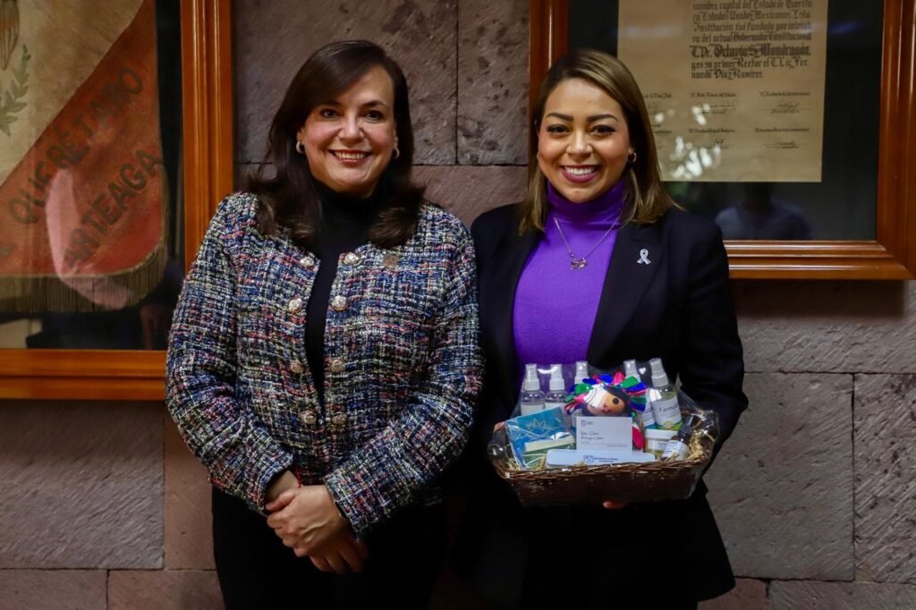 La rectora de la Universidad Autónoma de Querétaro (UAQ), Dra. Silvia Amaya Llano, se reunió con la presidenta de la Mesa Directiva de la LXI Legislatura del estado, diputada María Georgina Guzmán Álvarez, del Partido Verde, con el objetivo de dialogar respecto a temas prioritarios para la Institución, tales como el presupuesto 2026, rubro en el que la rectora pidió el apoyo de las y los diputados.