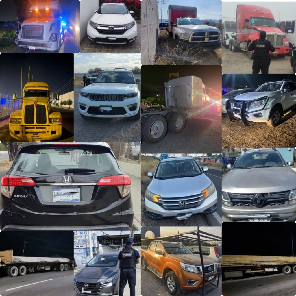 Como resultado de trabajos de inteligencia, el uso de herramientas tecnológicas y acciones operativas en los municipios de Querétaro, Corregidora, El Marqués, Pedro Escobedo y San Juan del Río, la Policía Estatal logró la recuperación de 15 vehículos que contaban con reporte de robo vigente.