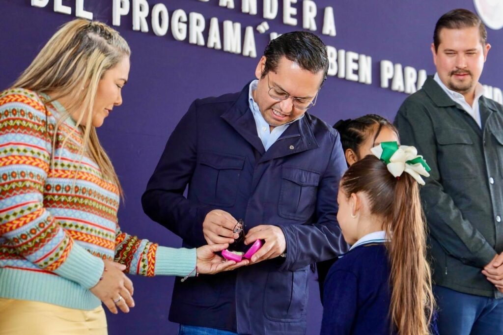 El presidente municipal de Corregidora, Chepe Guerrero, encabezó la entrega de 121 lentes a alumnas y alumnos de la escuela primaria “Reforma Agraria”, quienes fueron diagnosticados con dificultades visuales tras una revisión realizada a los 514 estudiantes del plantel.