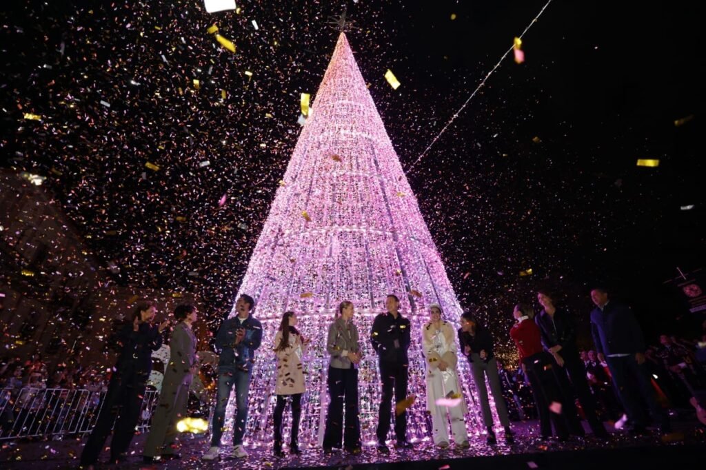 El gobernador de Querétaro, Mauricio Kuri González, acompañado de su familia; el alcalde Felipe Fernando Macías Olvera; funcionarios estatales; y cientos de personas que se reunieron en Plaza de Armas, encabezó el encendido de la iluminación navideña en esta época de unidad, esperanza y alegría.