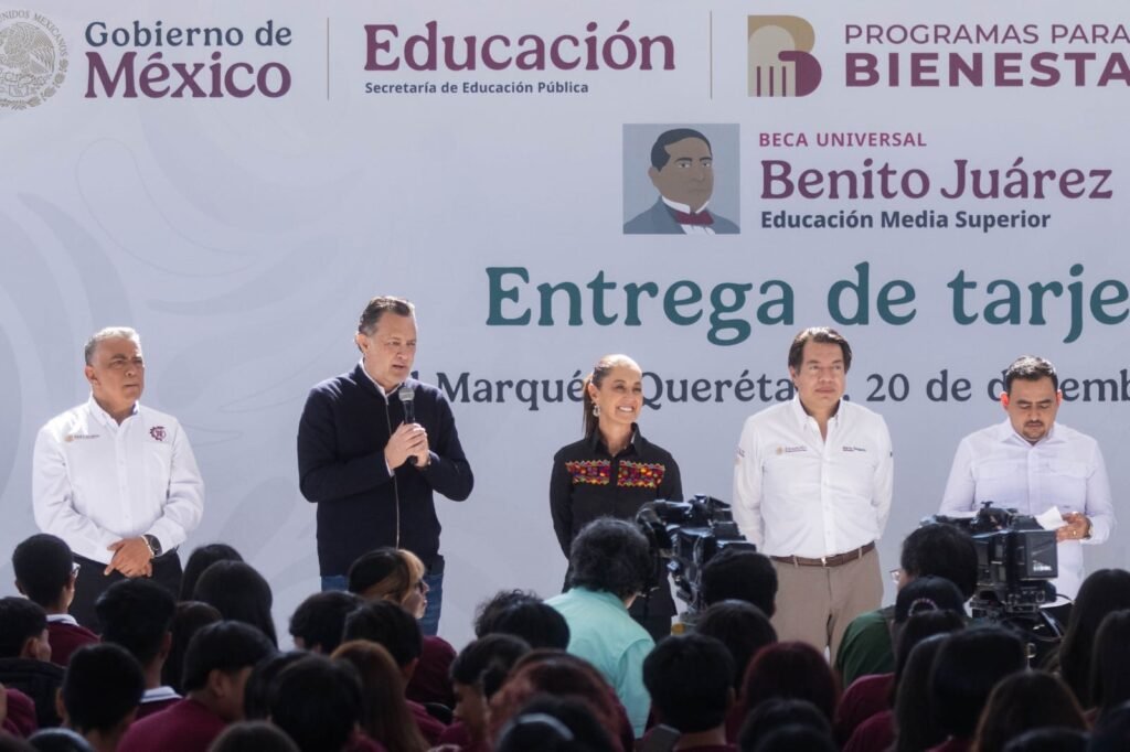 El gobernador de Querétaro, Mauricio Kuri González, acompañó a la presidenta de México, Claudia Sheinbaum Pardo, a la entrega de Becas “Benito Juárez” y a la supervisión de los trabajos de construcción del CBTIS 304 en el municipio de El Marqués, el cual presenta un avance del 90 por ciento.