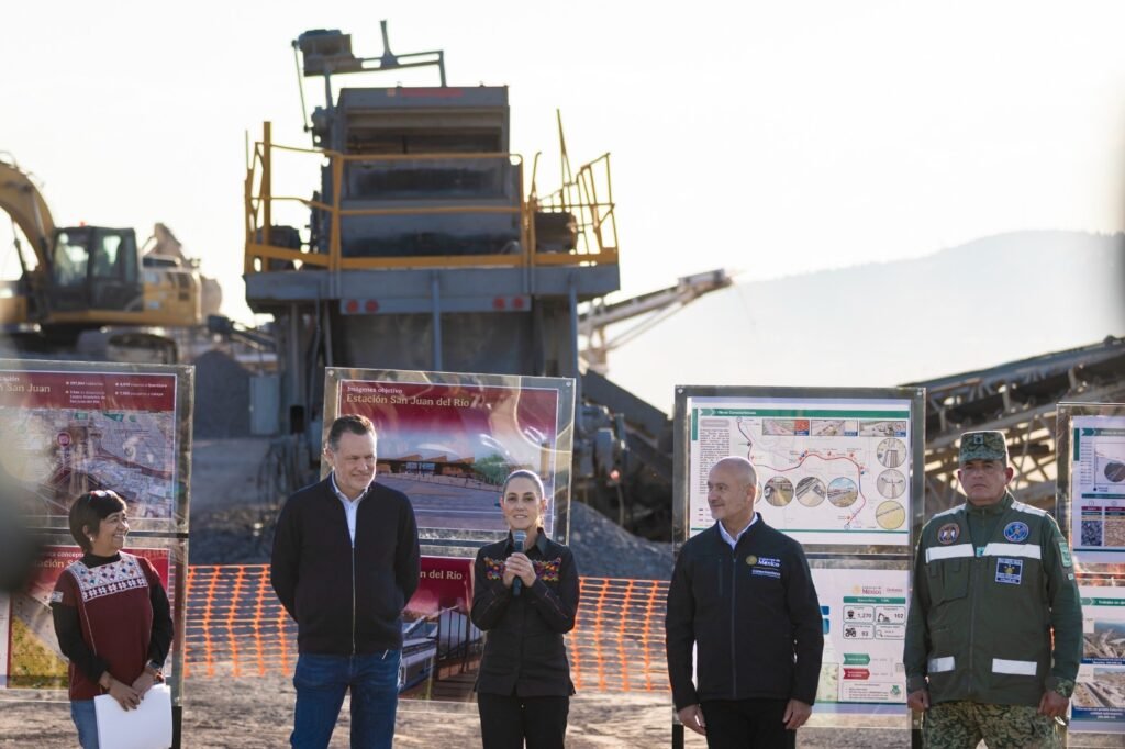 En el cierre de una gira de trabajo por el estado de Querétaro, la presidenta Claudia Sheinbaum Pardo y el gobernador Mauricio Kuri González supervisaron los trabajos de construcción del Tren México-Querétaro, obra que reporta un avance del ocho por ciento en la zona y, en general, del 7.5 por ciento.