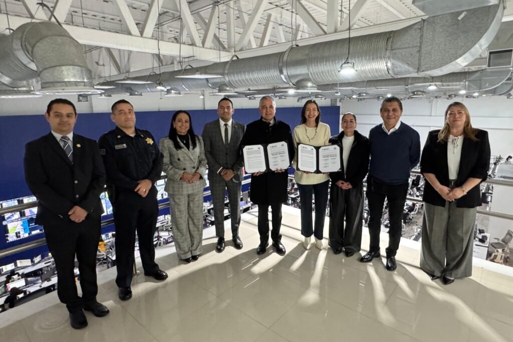La signa del convenio se llevó a cabo en las instalaciones del Centro de Atención a Emergencias (CAE) 9-1-1, que es el centro neurálgico tecnológico de la capital del estado, punto desde el cual se monitorea de manera preventiva, se vigila cada rincón de la ciudad y es donde se reciben y canalizan los reportes asociados con alguna emergencia las 24 horas del día, durante todo el año.