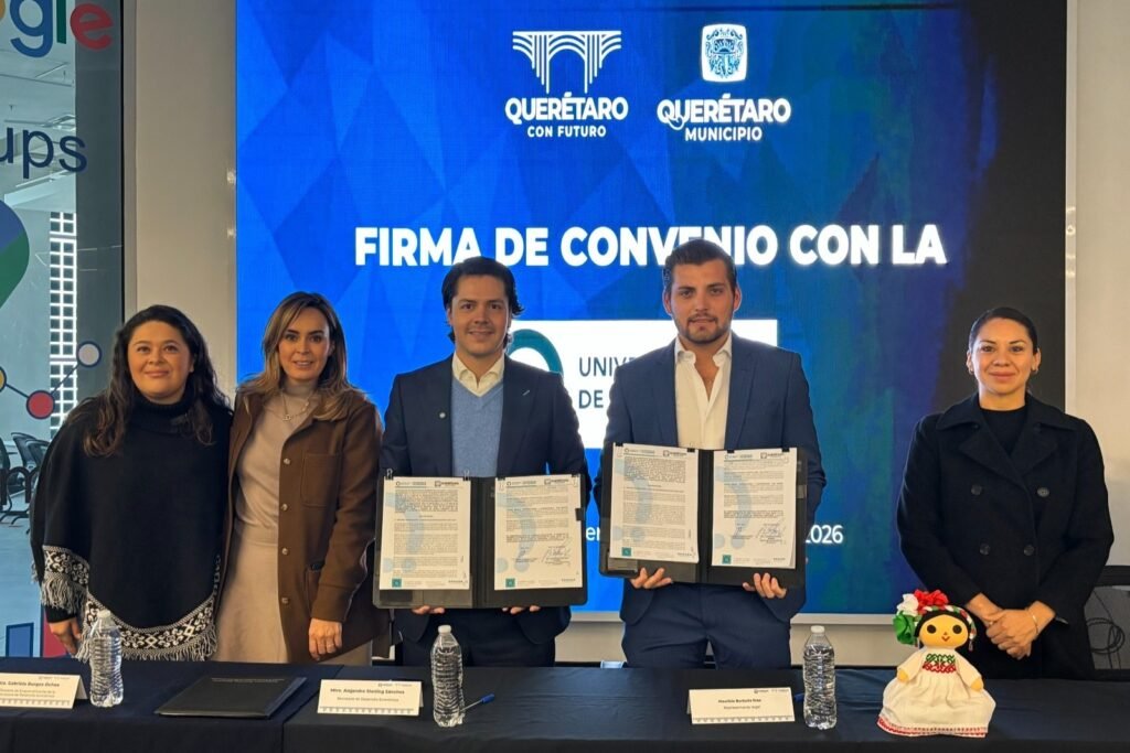 El Municipio de Querétaro, a través de la Secretaría de Desarrollo Económico, llevó a cabo la firma de un convenio de colaboración interinstitucional con la Universidad Real de Querétaro, con el objetivo de impulsar acciones conjuntas que fortalezcan la vinculación académica, profesional y empresarial entre ambas instituciones.