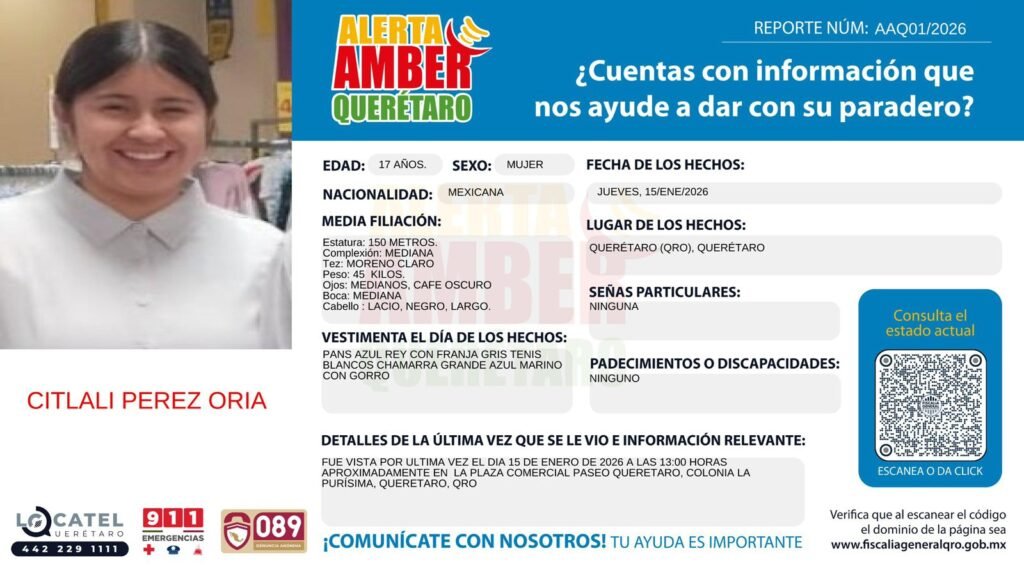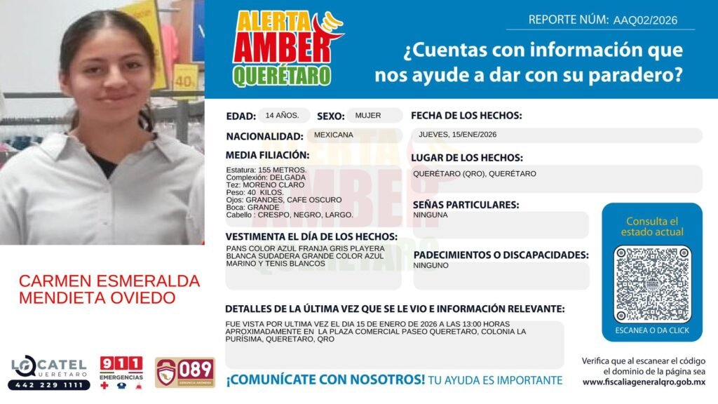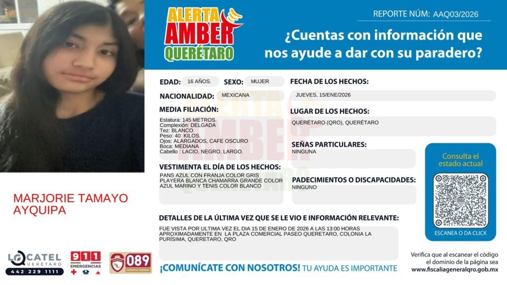 La Fiscalía de Querétaro refrendó su compromiso con la localización de niñas, niños y adolescentes, así como con el seguimiento puntual de cada caso, agradeciendo e invitando a la ciudadanía a continuar colaborando con información que pueda resultar útil, a través de los canales oficiales.