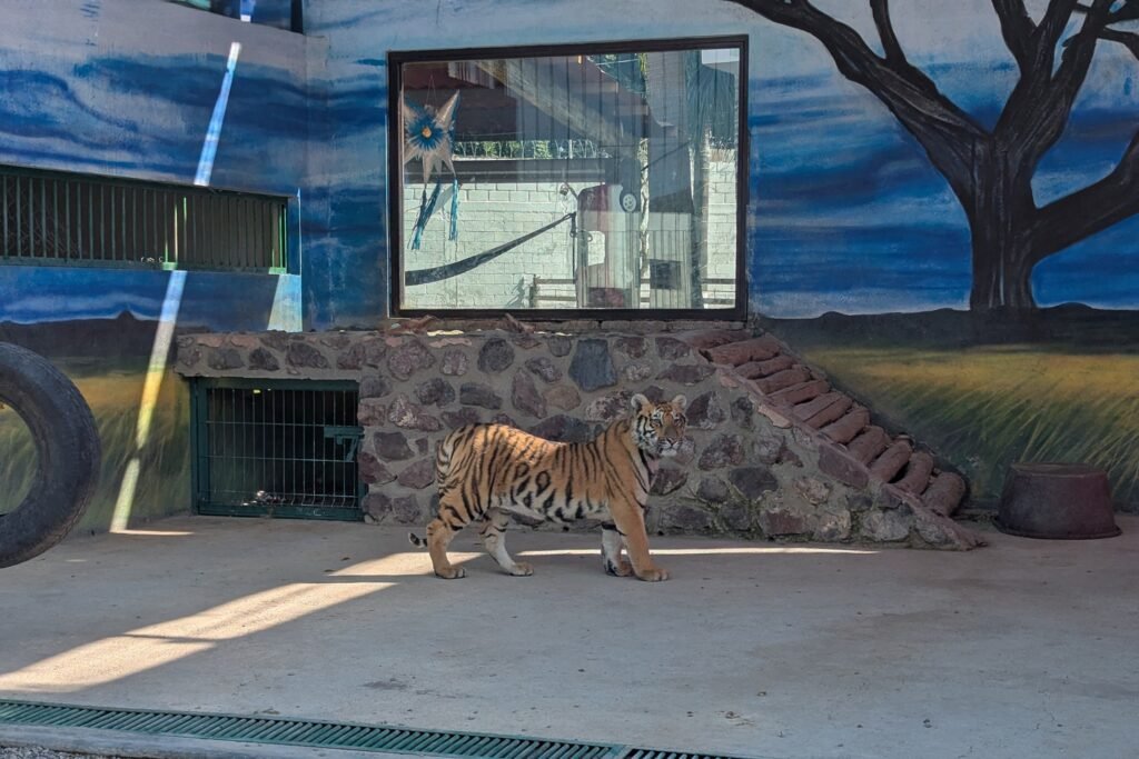 En tanto, dos cachorros de tigre de bengala (Panthera tigris) permanecen en el inmueble asegurado, bajo resguardo de la autoridad competente, en espera de su canalización a un PIMVS que cuente con las condiciones de espacio y manejo especializado, hasta que se determine su situación jurídica.
