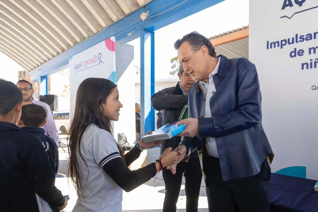 Ante la comunidad estudiantil, hizo hincapié en que estos materiales didácticos tienen como objetivo fomentar en las alumnas y alumnos la lectura, promoviendo la preservación y el enriquecimiento del patrimonio artístico, histórico y cultural del estado de Querétaro, logrando así identidad con la cultura y las tradiciones, al tiempo que se impulsa la formación integral de las niñas, niños y adolescentes.