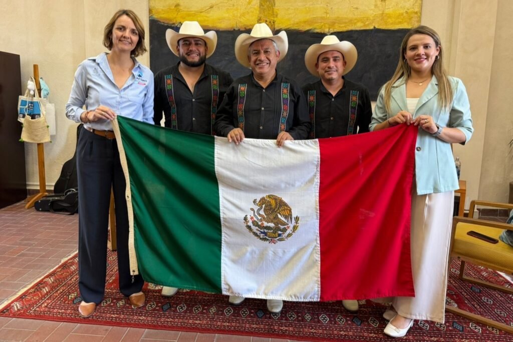 La secretaria de Cultura del estado, Ana Paola López Birlain, y la presidenta municipal de Landa de Matamoros, Yunuen Benítez Maldonado, abanderaron a los integrantes del trío: Luis Enrique Sastre Rubio, Hernán Andablo Melo Cortés y Godofredo Garay Cervantes.