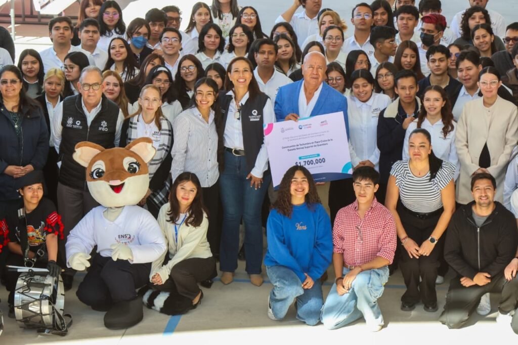 La secretaria de Educación del Estado de Querétaro (SEDEQ), Martha Soto, realizó la entrega de techumbre a la Escuela Normal Superior, para beneficio de 350 estudiantes y 25 docentes y administrativos, durante la ceremonia de inicio del semestre B 2025-2026.