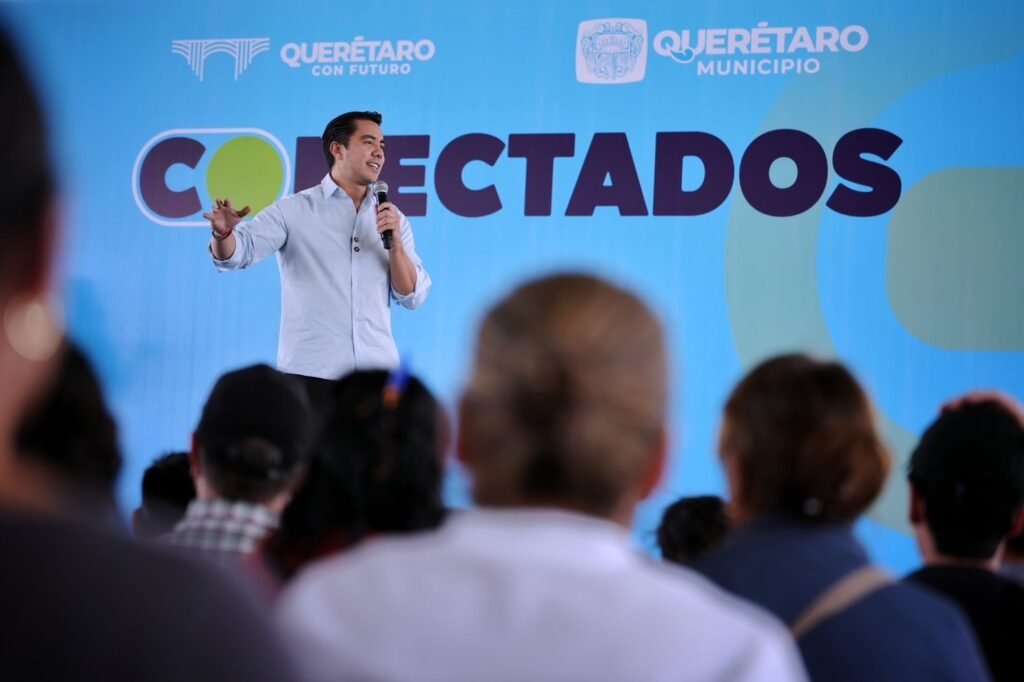 El presidente municipal de Querétaro, Felipe Fernando Macías Olvera, encabezó la entrega de computadoras portátiles del programa Conectados, evento donde destacó que esta acción reduce la brecha digital y amplía el acceso a las nuevas tecnologías de la información.