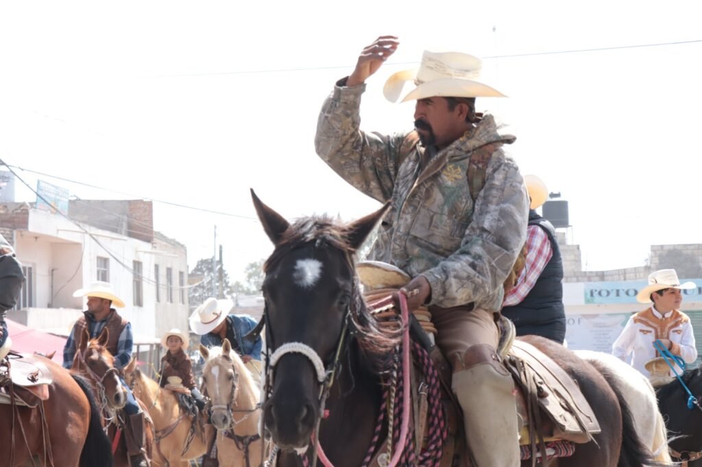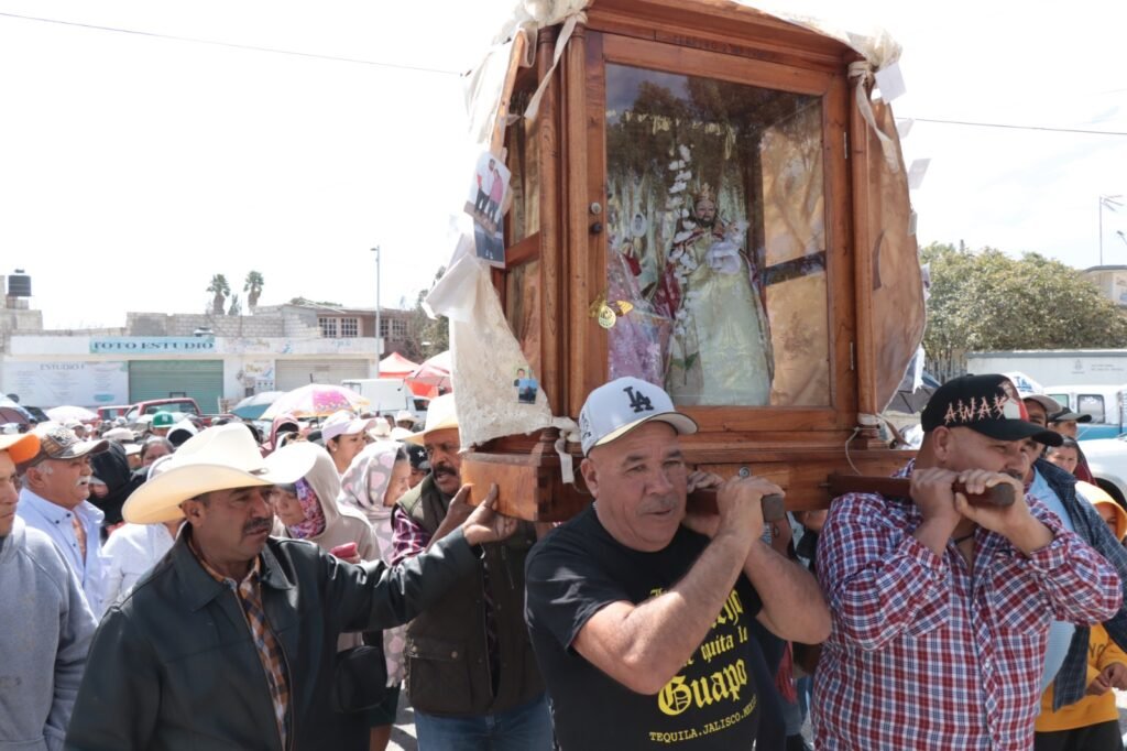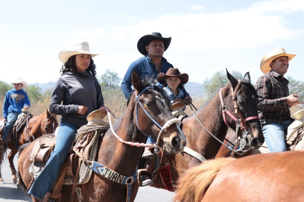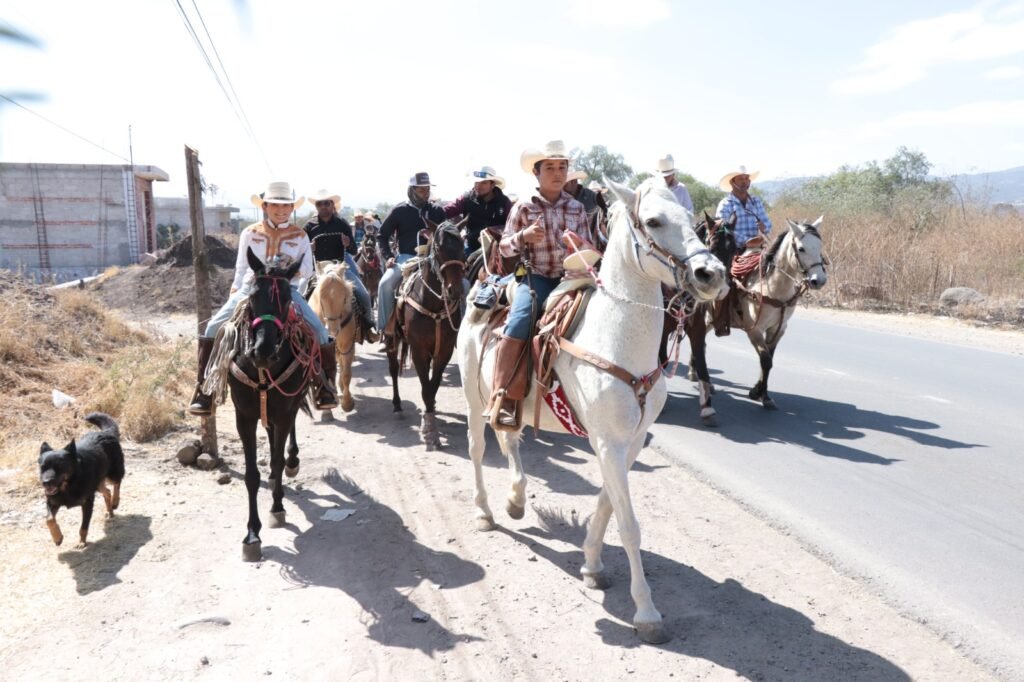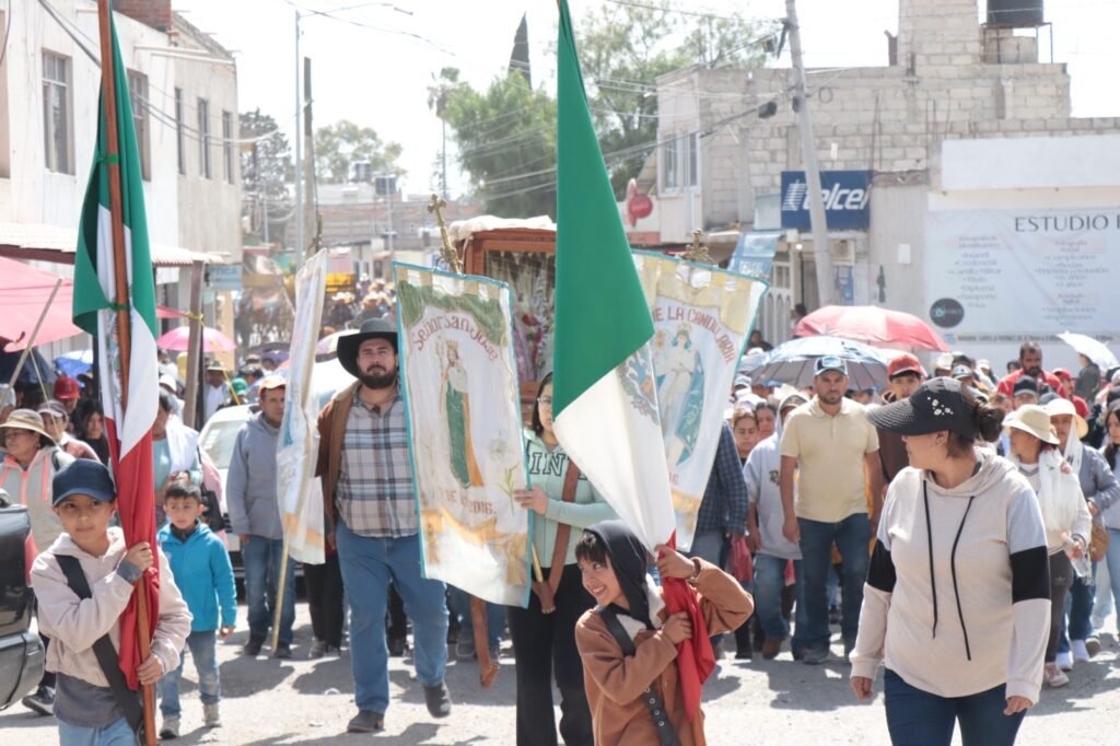 Los fieles, mujeres y hombres de distintas edades, quienes participan principalmente a pie y a caballo, así como en cuatrimotos, cargan las imágenes, así como estandartes y banderas, como una muestra de su fe y devoción.