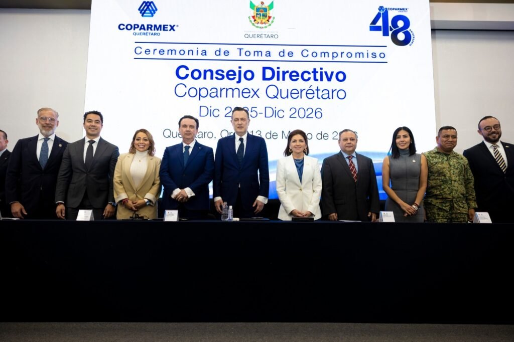 El gobernador Mauricio Kuri González atestiguó la toma de Compromiso de las y los integrantes del Consejo Directivo de la Confederación Patronal de la República Mexicana (COPARMEX), delegación Querétaro, que encabeza por segunda ocasión Beatriz Hernández Rojas, para el periodo 2025-2026.