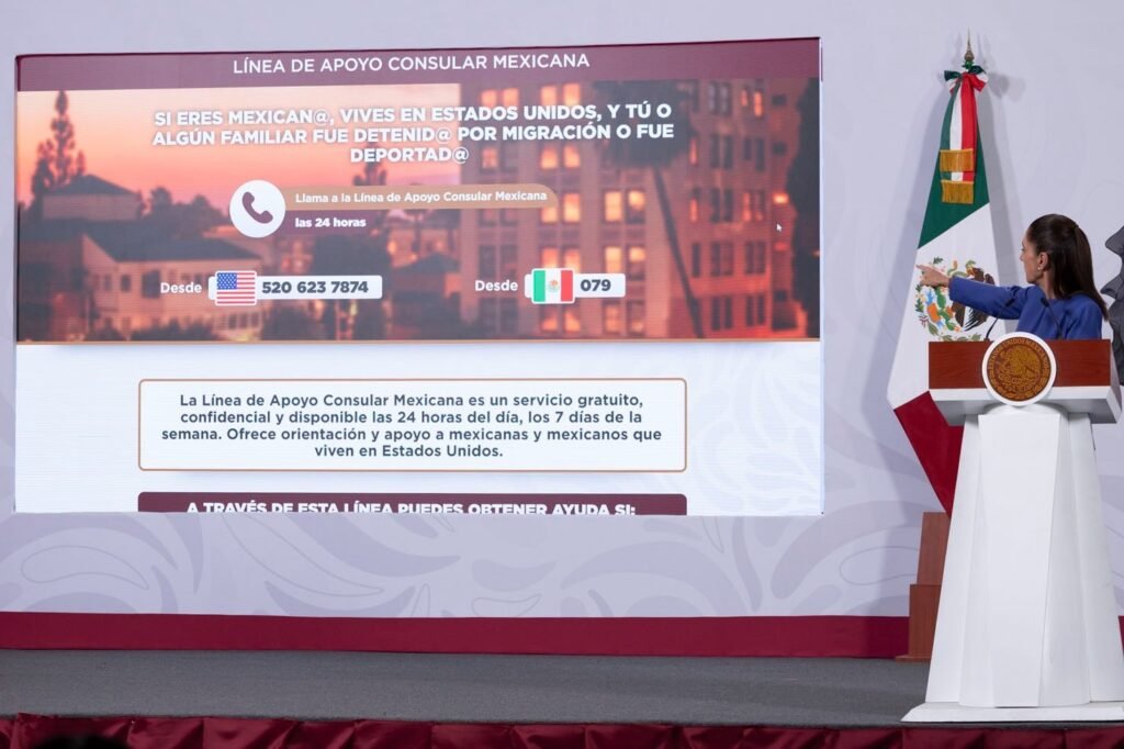 A través del teléfono 520 623 7874 desde Estados Unidos y el 079 desde México, se brinda apoyo consular en caso de que un migrante mexicano haya sido detenido. Está disponible las 24 horas.