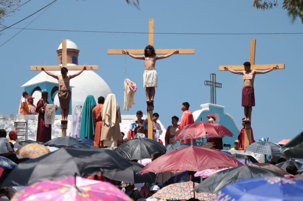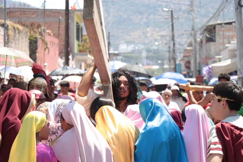 Jóvenes -principalmente- de Santa Rosa Jáuregui, quienes forman parte del grupo “Los Muchachos”, realizaron la representación del Viacrucis que organiza la Parroquia de Santa Rosa de Lima. En esta ocasión, el papel de Jesús de Nazaret fue interpretado por José Antonio Ortega Hernández, siendo la crucifixión en el Cerrito del Temazcal ante una gran cantidad de personas.