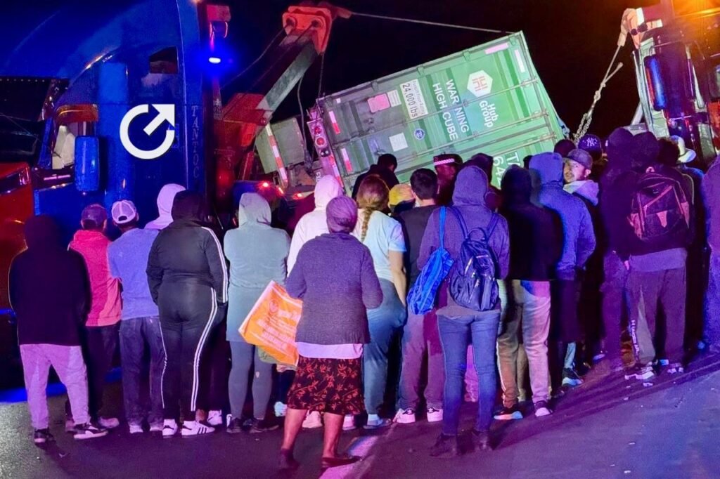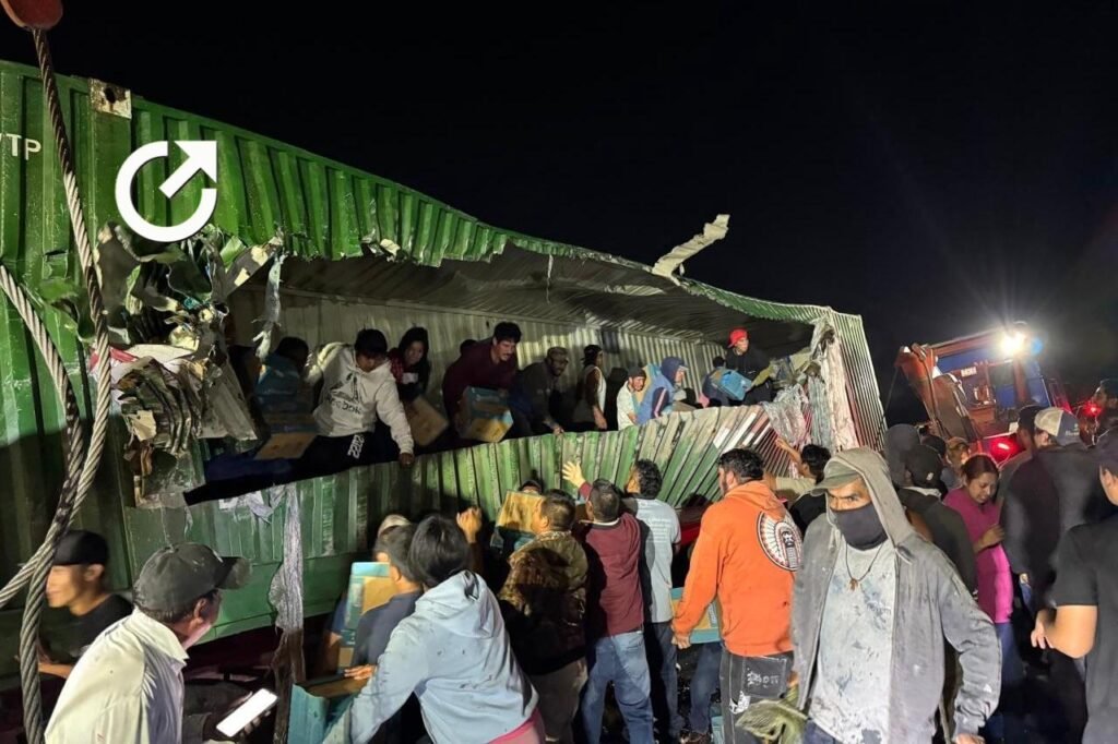 Fue en la madrugada de este miércoles que la vialidad fue abierta a la circulación vehicular, luego de la rapiña y de que los operadores de grúas por fin pudieron mover el tractocamión y el contenedor, cuya carga de suavizante quedó en manos de los pobladores de las comunidades de Santa Rosa Jáuregui.