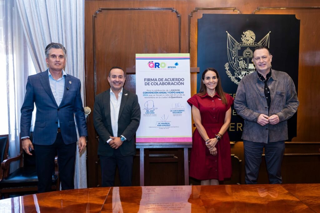 El titular del Poder Ejecutivo estatal, Mauricio Kuri González, atestiguó la firma del convenio de colaboración entre el presidente del Consejo Directivo de la Asociación Nacional de Entidades de Agua y Saneamiento de México, José Lara Lona, y el vocal ejecutivo de la Comisión Estatal de Aguas (CEA), Luis Alberto Vega Ricoy, que tiene como propósito formalizar la realización de la XXXVIII Convención Anual y Expo ANEAS 2026, que se llevará a cabo del 23 al 26 de noviembre en la ciudad de Querétaro.