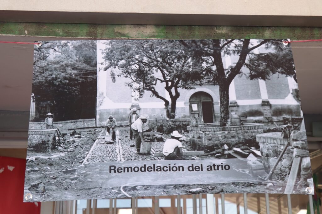 Además, al interior del plantel fueron colocadas lonas con fotografías antiguas, donde se podía ver una escena cotidiana de la calle Independencia, el Jardín Hidalgo en 1935, la remodelación del atrio del Templo de Santa Rosa de Lima, mujeres a caballo y un grupo de personas en 1919.